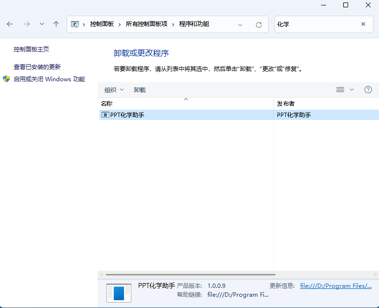 3、如果插件安装在原来的位置有变化,需要先在控制面板->程序和功能,找到插件,点击【卸载】,然后再安装新版本。